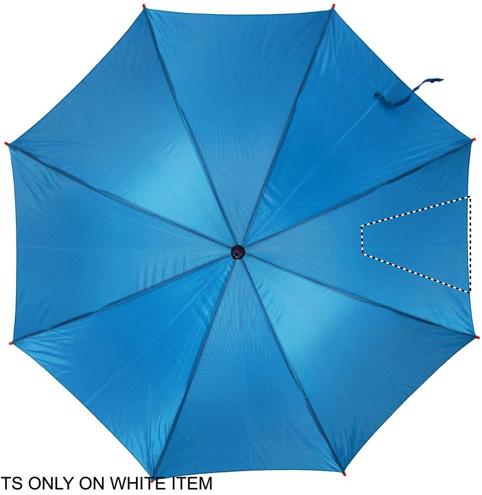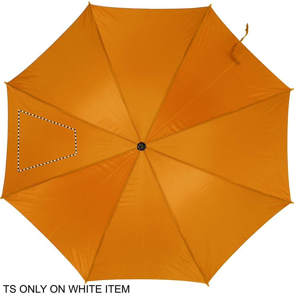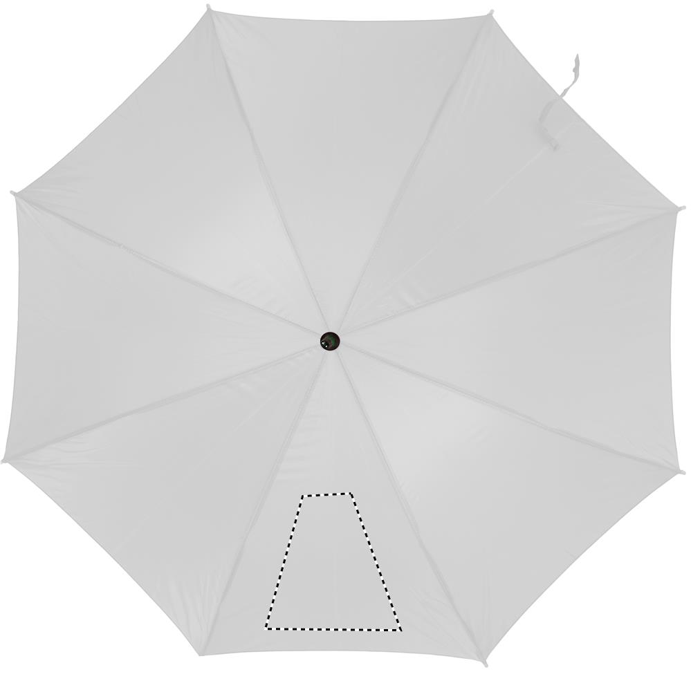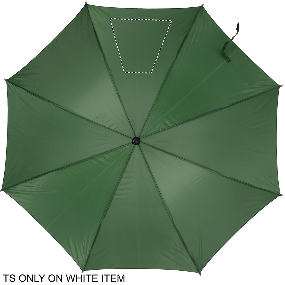 23 inch Regenschirm aus 190T Polyester. Stock, Spitzen und Krone aus Holz. Stangen aus schwarz überzogenem Metall. Gebogener Griff aus Holz in Natur-Finish. Automatische Öffnung, manuelle Schließung.