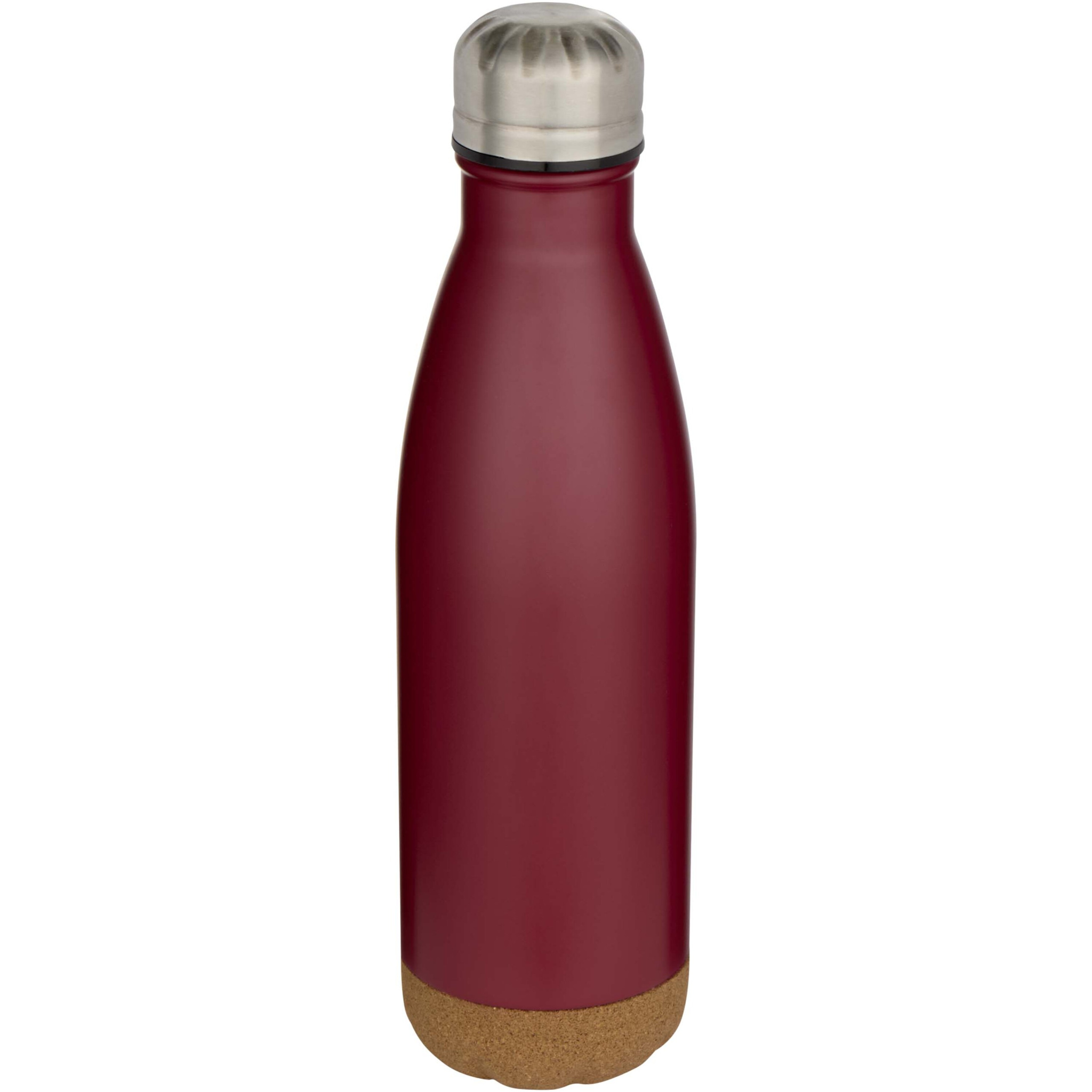 Vakuumisolierte Wasserflasche aus rostfreiem Stahl mit Korkdetails am Boden. Die doppelwandige Isolierung hält Getränke mehrere Stunden lang heiß oder kalt. Verpackt in einer Geschenkbox aus Recyclingkarton. Fassungsvermögen: 500 ml.