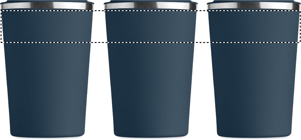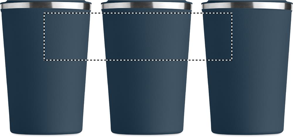 Doppelwandiger Becher aus Edelstahl mit PP-Deckel. Füllmenge: 350 ml.
