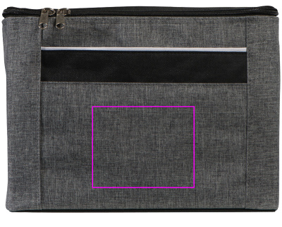 Kühltasche aus 300D+600D Polyester mit Tragegriff, Reißverschluss, Platz für sechs 500-ml-Dosen oder -Flaschen und einem mit Ihrem Logo bedruckten Frontfach.