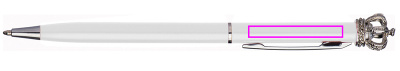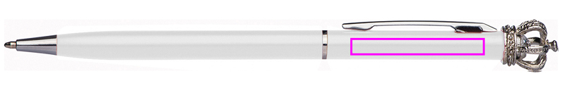 Schlanker Kugelschreiber aus Metall mit blauschreibender Mine. Die Krone und der kleine Glasdiamant machen diesen Stift einzigartig. Ihre Werbung gravieren wir rechts neben dem Clip.