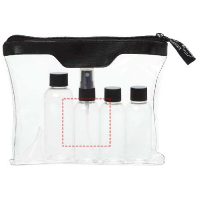 Für Flugreisen zugelassener Kulturbeutel, den Sie mit an Bord nehmen dürfen. Mit 2 x 50 ml Flaschen, 1 x 90 ml Flasche und 1 Zerstäuber und Trichter. Flaschen und Trichter im Kunststoffbeutel verpackt, werden getrennt vom Beutel geliefert. .