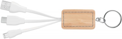 Schlüsselring mit Anhänger aus Bambus und Ladekabel USB-A, Mikro-B (2-in-1) und Typ-C. Bambus ist ein natürliches Produkt, es kann daher zu leichten Abweichungen in Farbe, Dekor und Maßen kommen..