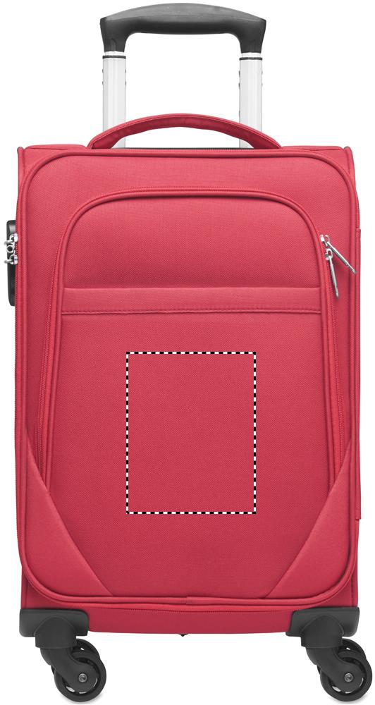 Kabinen Trolley aus 600D RPET Polyester. Außenfach mit Reißverschluss sowie Fronttasche mit Reißverschluss. Mit integriertem Zahlenschloss.