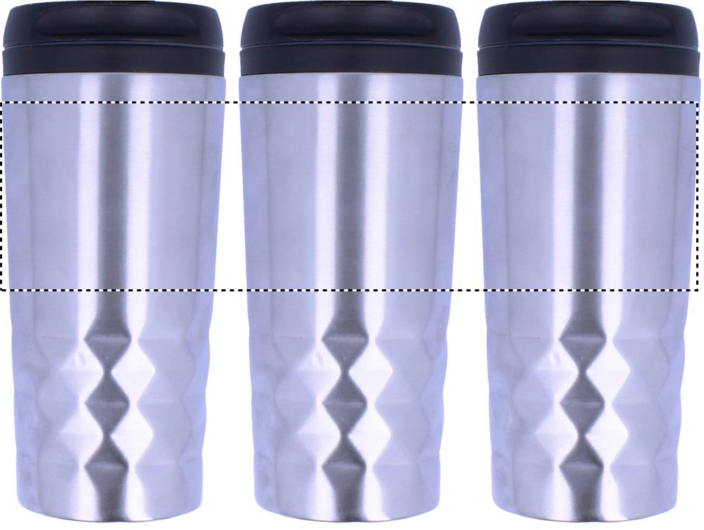 Doppelwandiger Trinkbecher aus Edelstahl. Innenbeschichtung und Deckel aus PP. Füllmenge: 280 ml.