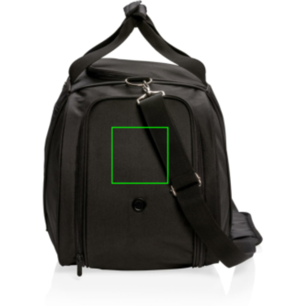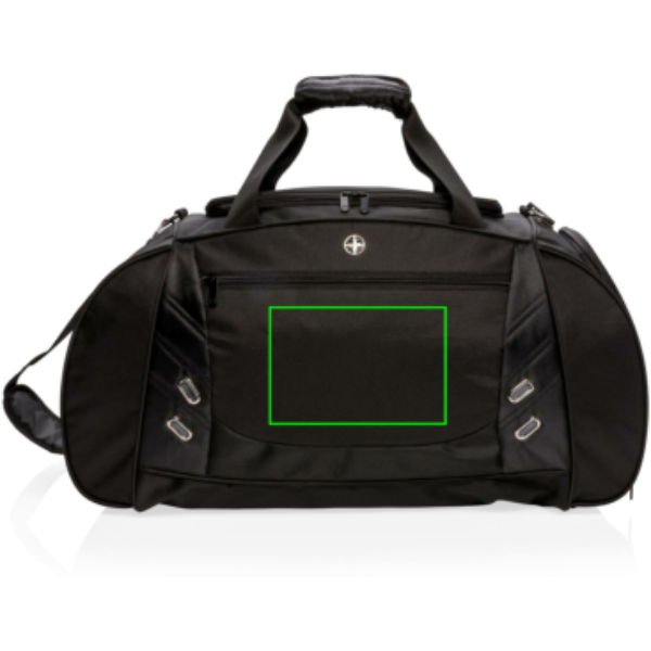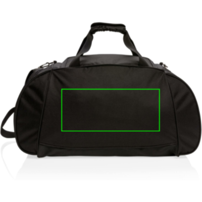 Diese 600D mit 1680D Polyester Tasche im sportlichen Design ist ideal für Ihren Besuch im Fitnessstudio oder für legeres Reisen. Inkl. geräumigem Hauptfach mit U-förmigem Reißverschluss an der Oberseite, seitlichem Schuhfach mit Belüftung und seitlichem Flaschenhalterfach. Praktisches Frontfach mit Reißverschluss für Smartphones und andere Reiseaccessoires. Verstellbarer Schulterriemen und doppelter Tragegriff an der Oberseite für besseren Tragekomfort und Trageflexibilität. PVC-frei.