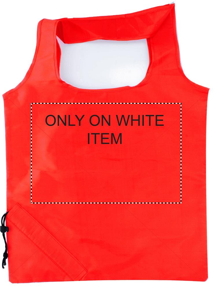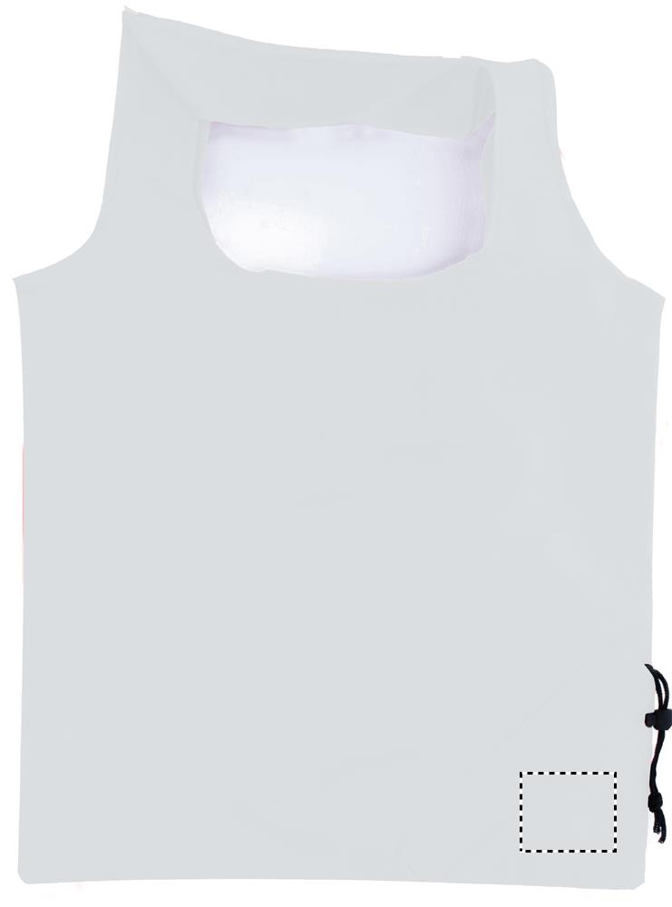Foldable shopping bag in 210D polyester with drawstring closure on pouch.