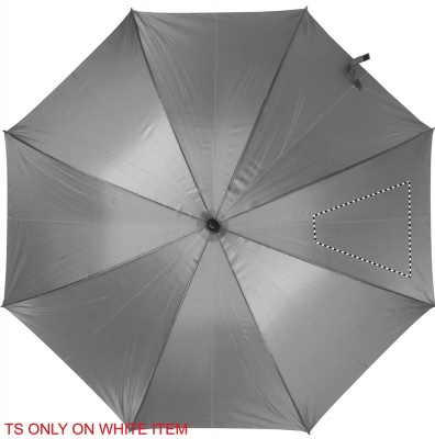 30 inch manual open windproof umbrella in 190T polyester with fiberglass shaft and ribs. Black plastic tips and top. Straight black EVA handle. Manual closure.