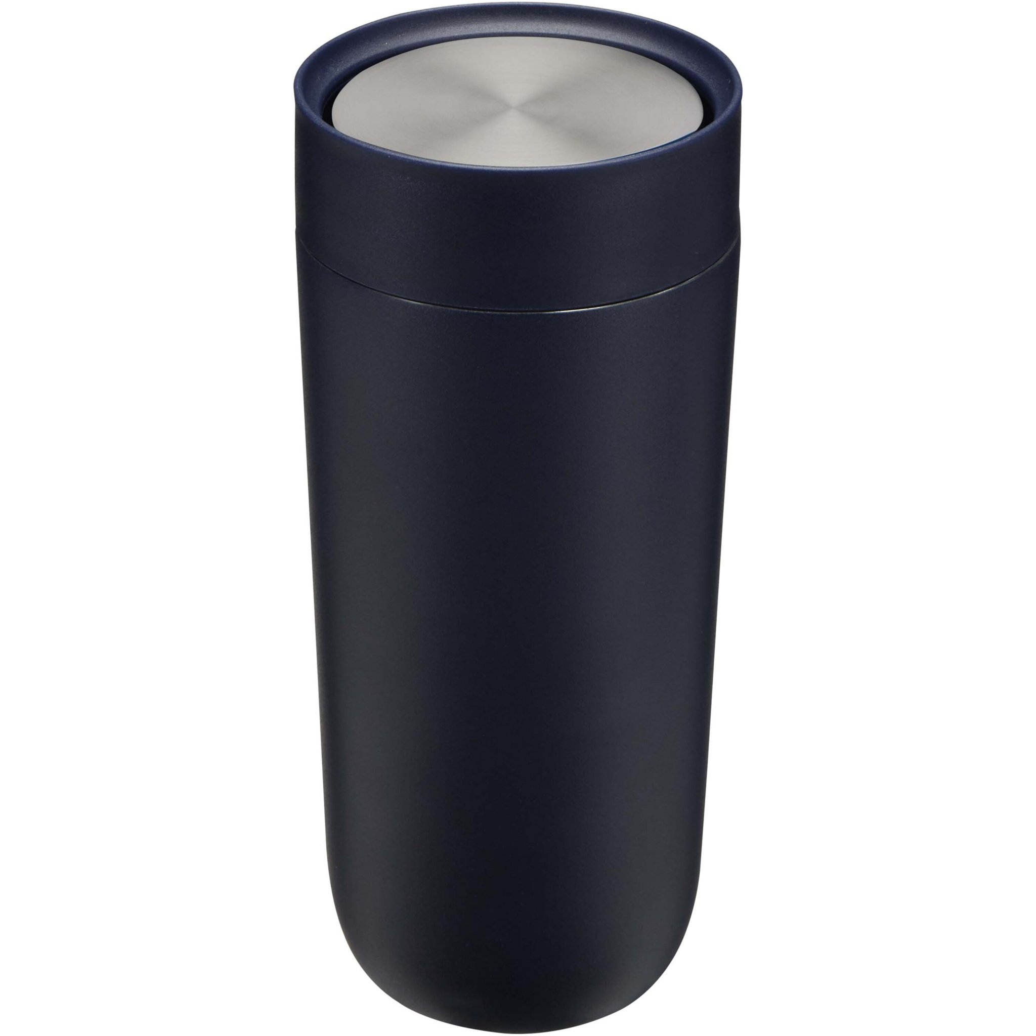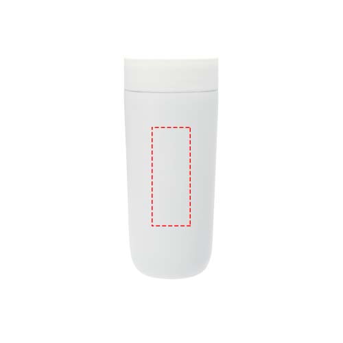 Premium to-go tumbler with a handy stainless steel push-top opening mechanism that allows for one-hand operation. RCS certified stainless steel body with a durable power coating. The lid is made of RCS certified stainless steel and PP plastic. Copper plating and ceramic lining. Fits most common car cup holders. Keeps drinks 12 hours hot or 24 hours cold. Presented in a recycled cardboard gift box. Volume capacity: 350 ml.