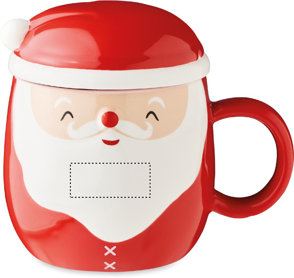 Ceramic mug with Santa Claus decoration and lid. Capacity: 370 ml.