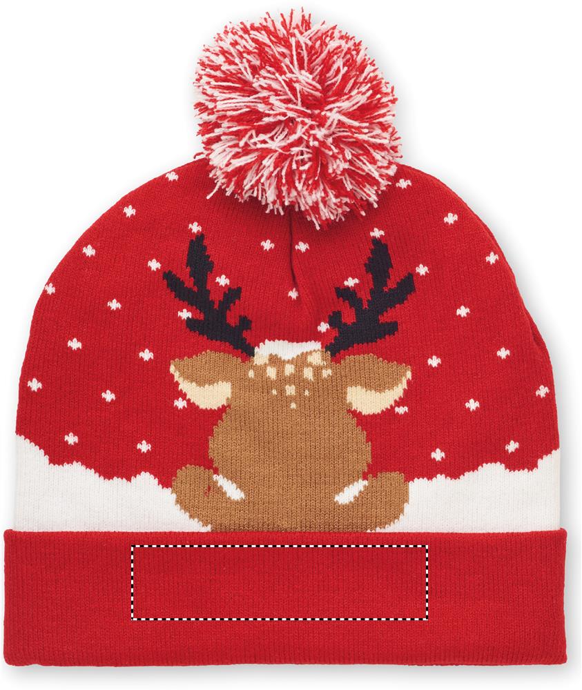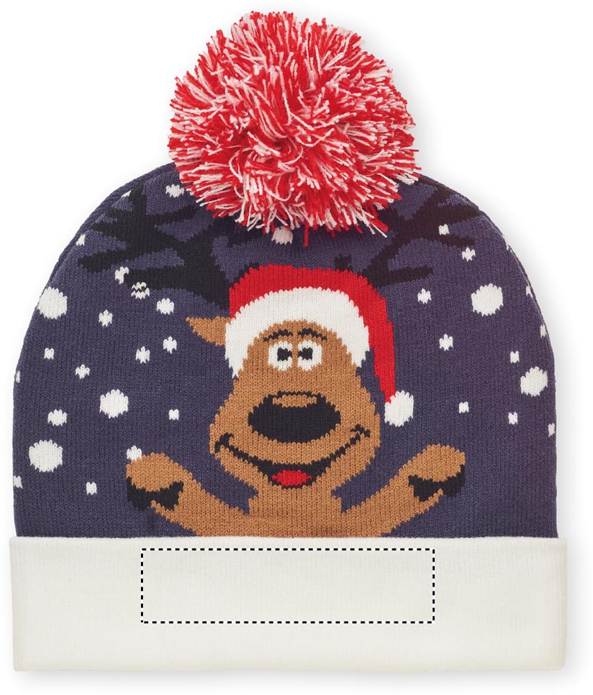 Christmas knitted beanie with cuff and bobble in soft stretchable acrylic.