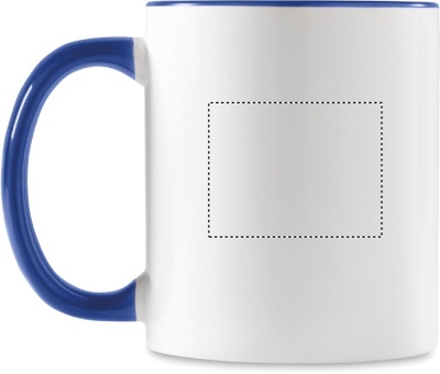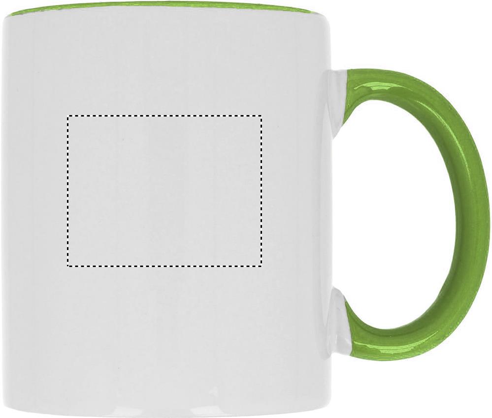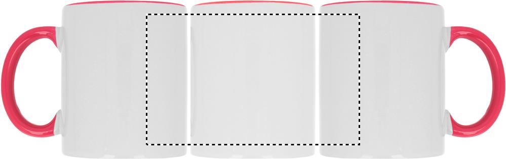 Ceramic mug of 300 ml capacity with special coating for sublimation with coloured handle and inside. Individual packing in white carton box.