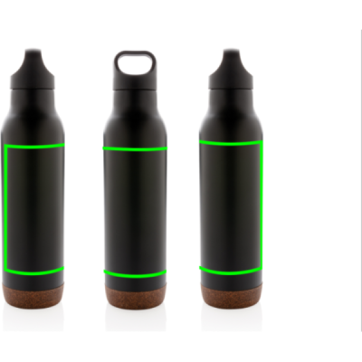 Vacuum insulated leak proof flask with durable 304 SS inside and 201 outside. Unique cork detail on the bottom. Keeps your drinks hot for up to 5h and cold up to 15h. Content: 600ml.