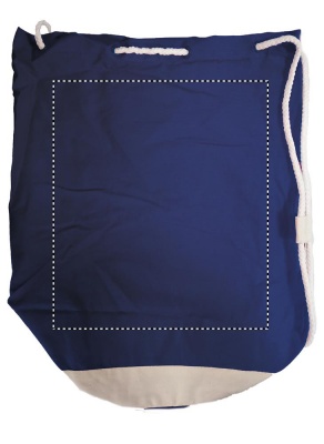Bicolour cotton navy duffle bag with white stripe. 200gr/m² cotton twill.