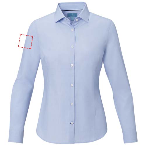 The Cuprite long sleeve women's organic shirt – a sustainable and stylish choice. Made from organic cotton poplin, this shirt combines ethical manufacturing with exceptional comfort. It features a semi-spread collar that offers a more relaxed and versatile look. The contrast-coloured stitching on the sleeve placket and bottom buttonhole placket adds a subtle pop of style. This shirt is designed with a fitted shape for a feminine look.