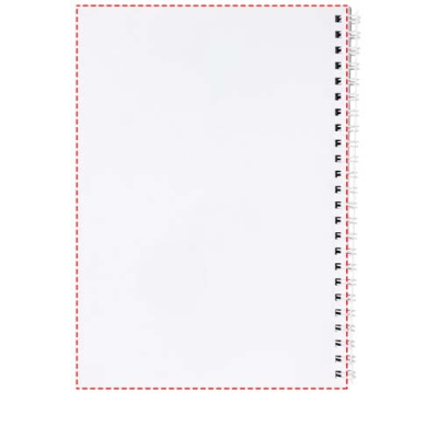 Desk-Mate® spiral A6 notebook. This notebook includes a white or black wire, a glossy card front cover (250 g/m2) and (80 g/m2) blank paper. Standard delivered with 50 sheets, also available with 80 sheets. You can customise the pages of this versatile notebook with any design - so whether you want lined paper, squares or dots - anything is possible!