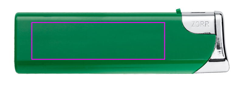 Refillable electronic lighter made of plastic. Of course, this model has the mandatory child safety lock. We print your logo on one side of the lighter.