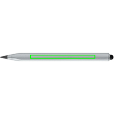 Modern infinity pen made with RCS certified recycled aluminum. Total recycled content: 40% based on total item weight. RCS certification ensures a completely certified supply chain of the recycled materials. Triangle shaped body with CM indication on one side and Inches on another side. Traditional wooden pencils write only up to around 200 metres but this Tree free infinity pencil, has a writing length of up to around 20000 metres using a graphite tip to produce a graphite line. Not only does it write like a pencil, but the markings can be erased. It works by leaving a graphite line on paper just like a regular traditional wooden pencil but it wears down so slowly, that it should outlast up to 100 traditional wooden pencils! With touch tip to operate mobile device. Packed in FSC® mix packaging.