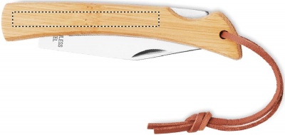 Foldable knife in 2CR13 stainless steel and bamboo handle with PU handle cord. Bamboo is a natural product, there may be slight variations in colour and size per item, which can affect the final decoration outcome.