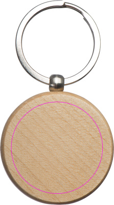 Round beech wood keychain with key ring. Through a laser engraving your logo comes ideally to the fore.