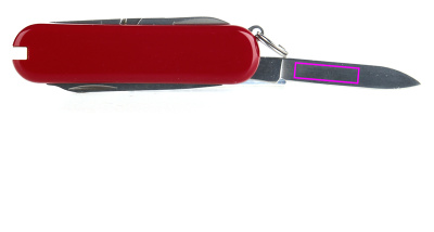 Thanks to its small size, the Classic SD pocket knife is perfect as a very practical keychain.Features: 1.small blade for cutting, 2.pair of mini scissors, 3.nail file 4.with a screwdriver tip, 5.toothpick, 6.tweezers, 7.key ring