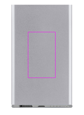 Aluminium power bank with 4.000 mAh charging capacity, charge indicator, multiplug charging cable (lightning, USB Type C, and Micro-USB.) Your logo will be engraved.