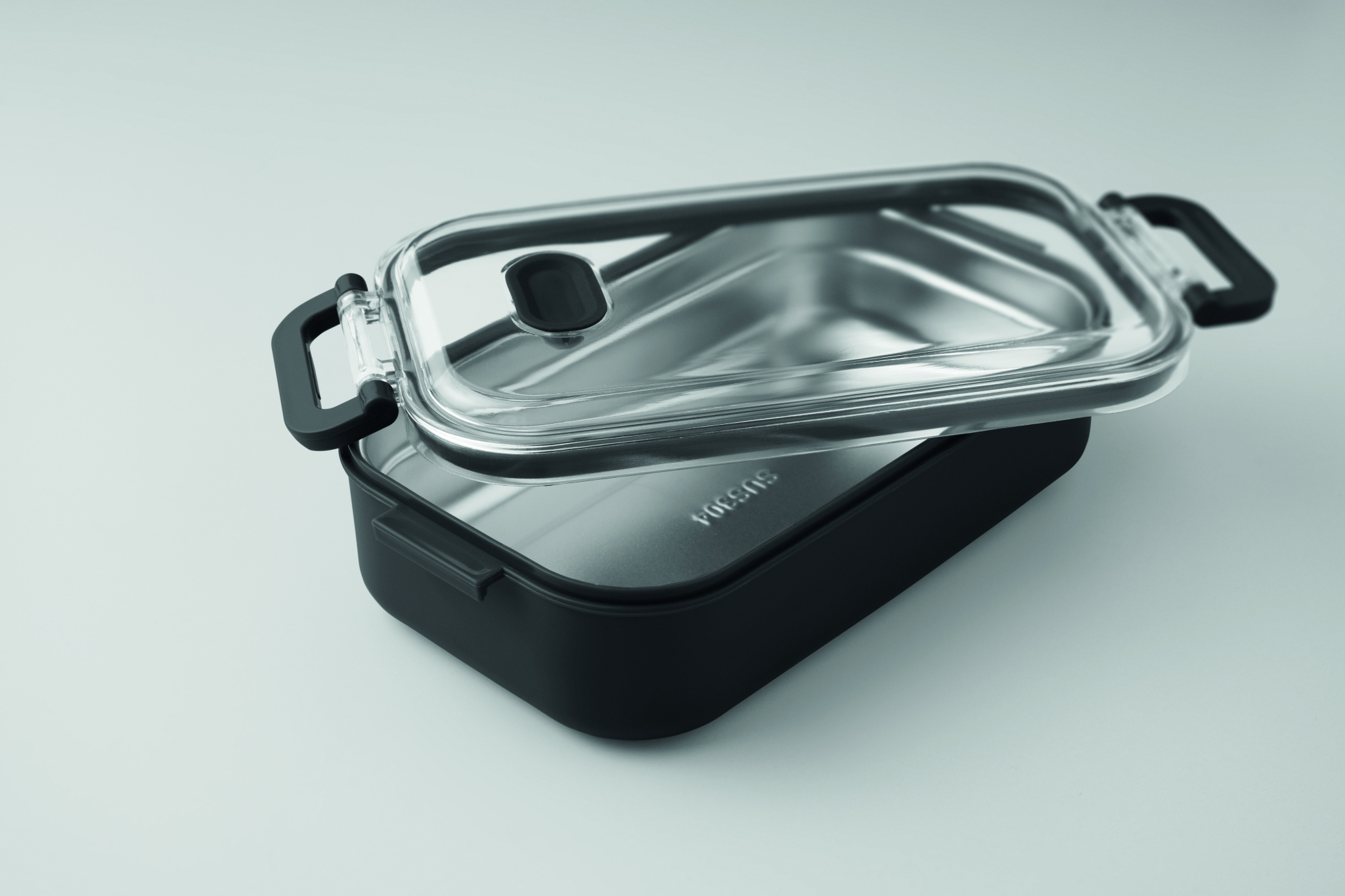 Lunch box made of PP with additional recycled stainless steel inner layer. Airtight AS lid that keeps food fresh and secure during transport. Capacity 750 ml without tray and 650 ml with tray.