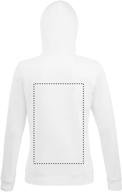 SOL'S SPENCER WOMEN, WOMEN'S HOODED SWEATSHIRT, 80% ringspun cotton - 20% polyester, Brushed lining, Outside: 100% cotton FLEECE 280 LSF (Low Shrinkage Fabric) , Front pouch pocket, Cut and sewn, Lined hood with drawcord, 2x2 ribbed cuffs and hem, Half moon inside collar, Taped neck. About sizes matching, please refer to the size chart in the product documentation section.