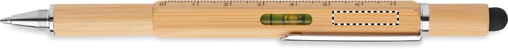 Twist action spirit level pen in bamboo with 7 cm ruler, stylus and Phillips head and flat head screw driver bits. Blue ink. Bamboo is a natural product, there may be slight variations in colour and size per item, which can affect the final decoration outcome.