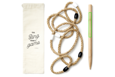 An outdoor game that works just as well on the beach as in the park, packaged in a cotton bag that makes it easy to carry around. The game consists of throwing ropes shaped like circles onto a stick that you simply attach to the ground. The different sizes of the rings give different amounts of points. A full instruction manual is included.