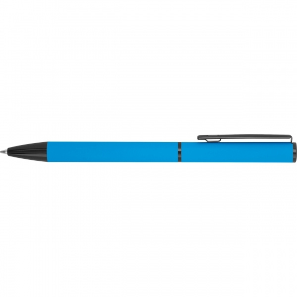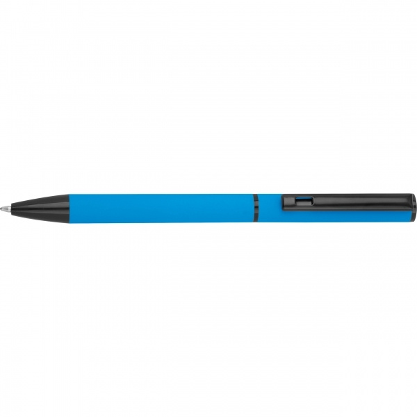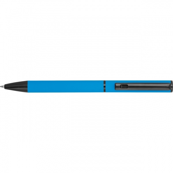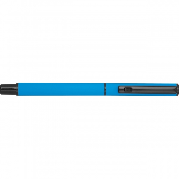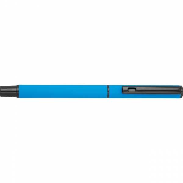 Writing set consisting of a black-ink rollerball pen and a blue-ink twist ballpoint pen (with large-capacity plastic refill), packaged in a box. Your logo is applied to both pens using laser engraving, in the same size.