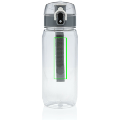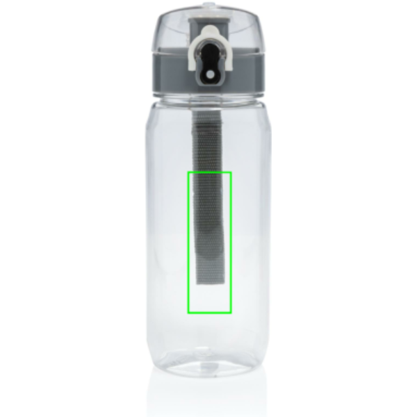 This RCS RPET water bottle is leakproof and features a lockable and one hand operation lid. It also features a handle for easy carrying. The body of the bottle is made from 100% RCS certified RPET. RCS certification ensures a completely certified supply chain of the recycled materials. Hand wash only. This product is for cold drinks only. Total recycled content: 73% based on total item weight. BPA free. Capacity 600ml. Including FSC®-certified kraft gift packaging.