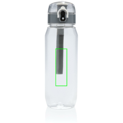 This RCS RPET water bottle is leakproof and features a lockable and one hand operation lid. It also features a handle for easy carrying. The body of the bottle is made from 100% RCS certified RPET. RCS certification ensures a completely certified supply chain of the recycled materials. Hand wash only. This product is for cold drinks only. Total recycled content: 73% based on total item weight. BPA free. Capacity 800ml. Including FSC®-certified kraft gift packaging.