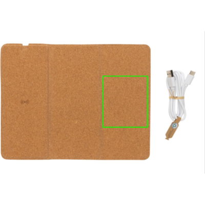 Logo trade firmakingi pilt: 10 W juhtmevaba laadimisega korgist hiirematt ja alus