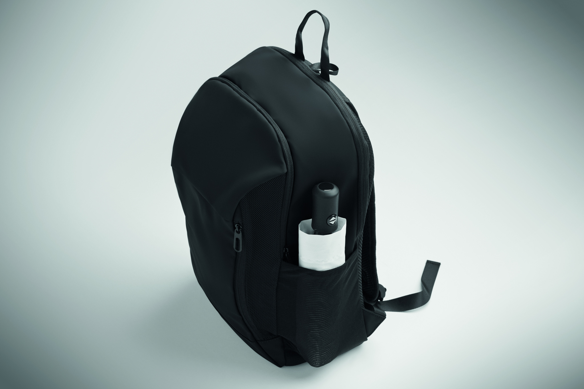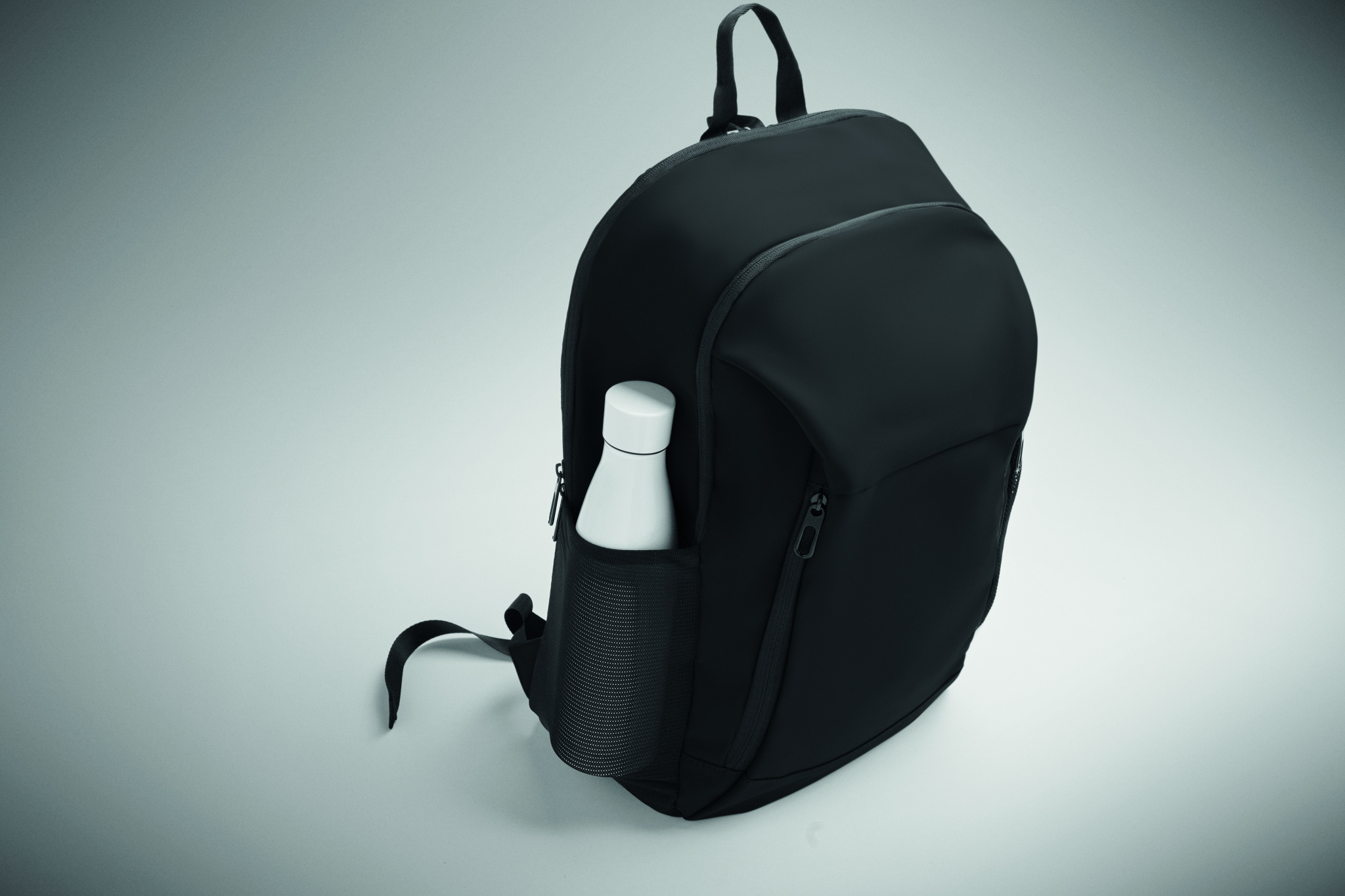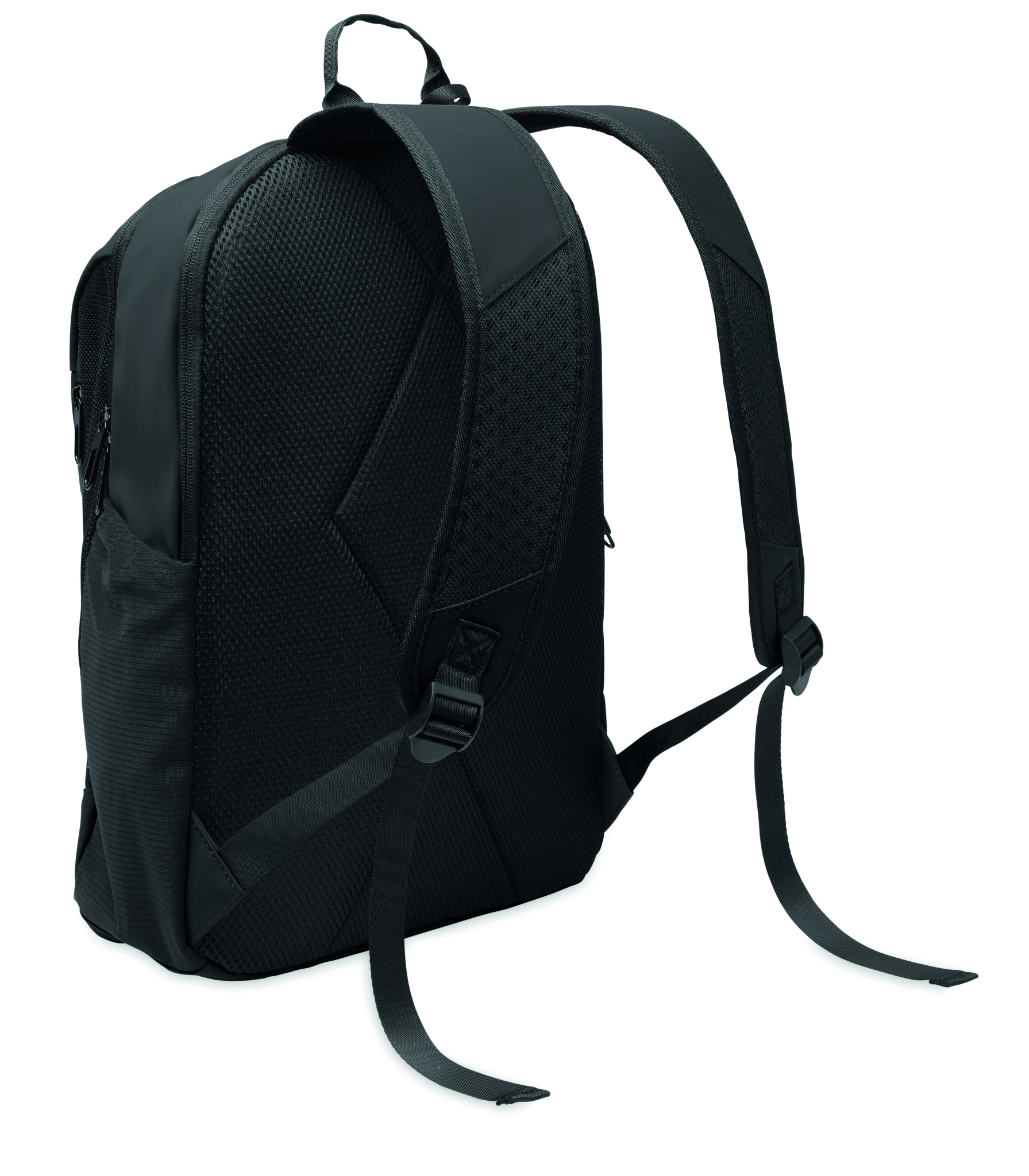 15-tolline sülearvutikott pehmest polüuretaanist, polsterdatud seljaosa ja peidetud lukuga peamise sahtliga. 1 lukuga esitasku, 2 lukuga külgmist esitaskut ja 2 elastse võrgust küljetaskut. 210D RPET voodriga.