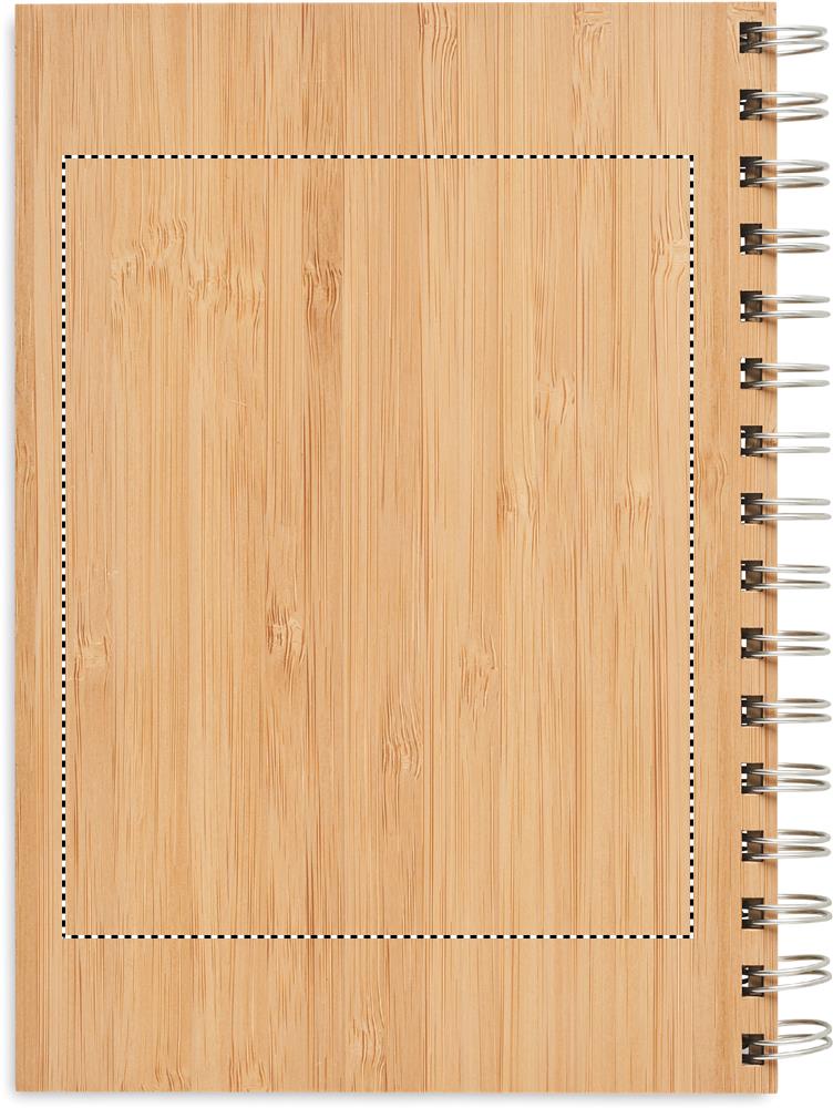 Bambusest kaanega märkmik. Kahe traadiga rõngasköites, 140 joonega jõupaberilehte (70 lehte). Bambus on looduslik toode, ühe eseme värvis ja suuruses võib esineda väikesi erinevusi, mis võivad mõjutada lõppviimistlust.