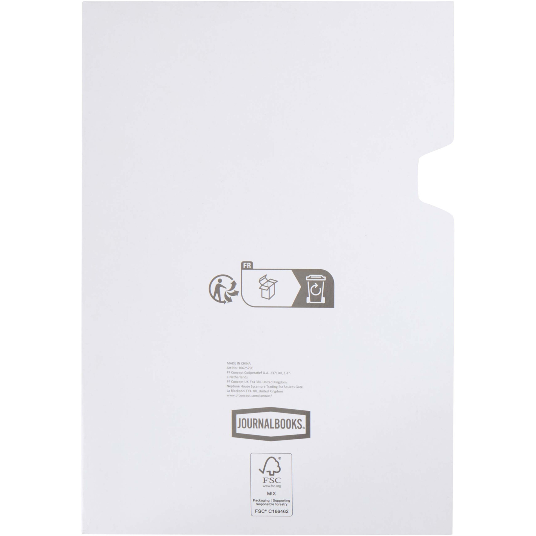 Alder A5 märkmik on valmistatud taaskasutatud nahasarnasest plastist. Märkmik sisaldab 192 lehte 80 g/m² kreemikat paberit päevaplaneerija paigutusega, mis sobib ideaalselt päeviku pidamiseks. Sellel on kaks kummipaela, kolm järjehoidjat (must, punane ja sinine), 200 värvilist väikest kleepmärkmepaberit (40 igast värvist) ja paberitasku lahtiste märkmete jaoks. Tagakaanel on reljeefne JournalBooks logo.