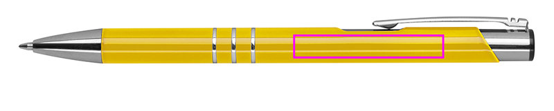 Täielikult lakitud metallist pastapliiats 3 dekoratiivrõnga ja suure mahutavusega sinise kirjaga täidisega. Teie logo graveeritakse klipist paremale.
