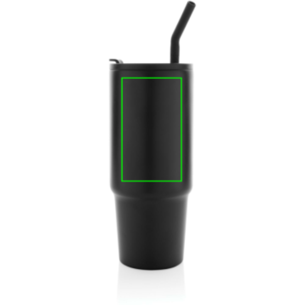 Sellel lekkekindla kaanega kruusil on mugav käepide ja õhuke põhi, mis sobib ideaalselt enamiku topsihoidjatega. See silikoonist joogikõrre ja 900 ml mahutavusega termoskruus on valmistatud vastupidavast taaskasutatud roostevabast terasest. Keerataval kaanel on kaks funktsiooni, pakkudes mugavat joogitila või kõrre kasutamise võimalust. Soovitame käsipesu. RCS-sertifikaat tagab taaskasutatud materjalide täielikult sertifitseeritud tarneahela. Taaskasutatud materjali on 70% eseme kogukaalust. BPA- vaba plastik.