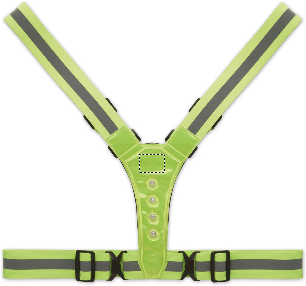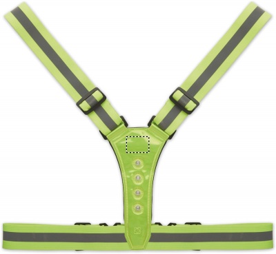 Reguleeritav 360° helkurvöö 4 LED-iga ees ja 4 LED-i taga ning hõbedased triibud. Kaasas 2 CR2032 patareid. Ainult reklaamiks kasutamiseks.