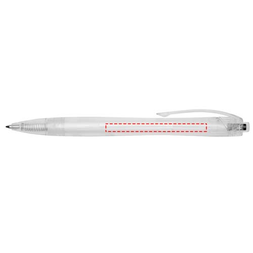 Click action pastapliiats, mis on valmistatud taaskasutatud PET-st, vähendades esmase plasti kasutamist. Pastapliiatsil on läbipaistev toru ja värviline nupp. See on eellaaditud sinise täidisega ja seda saab kombineerida 107763 Honua RPET sülearvutiga.