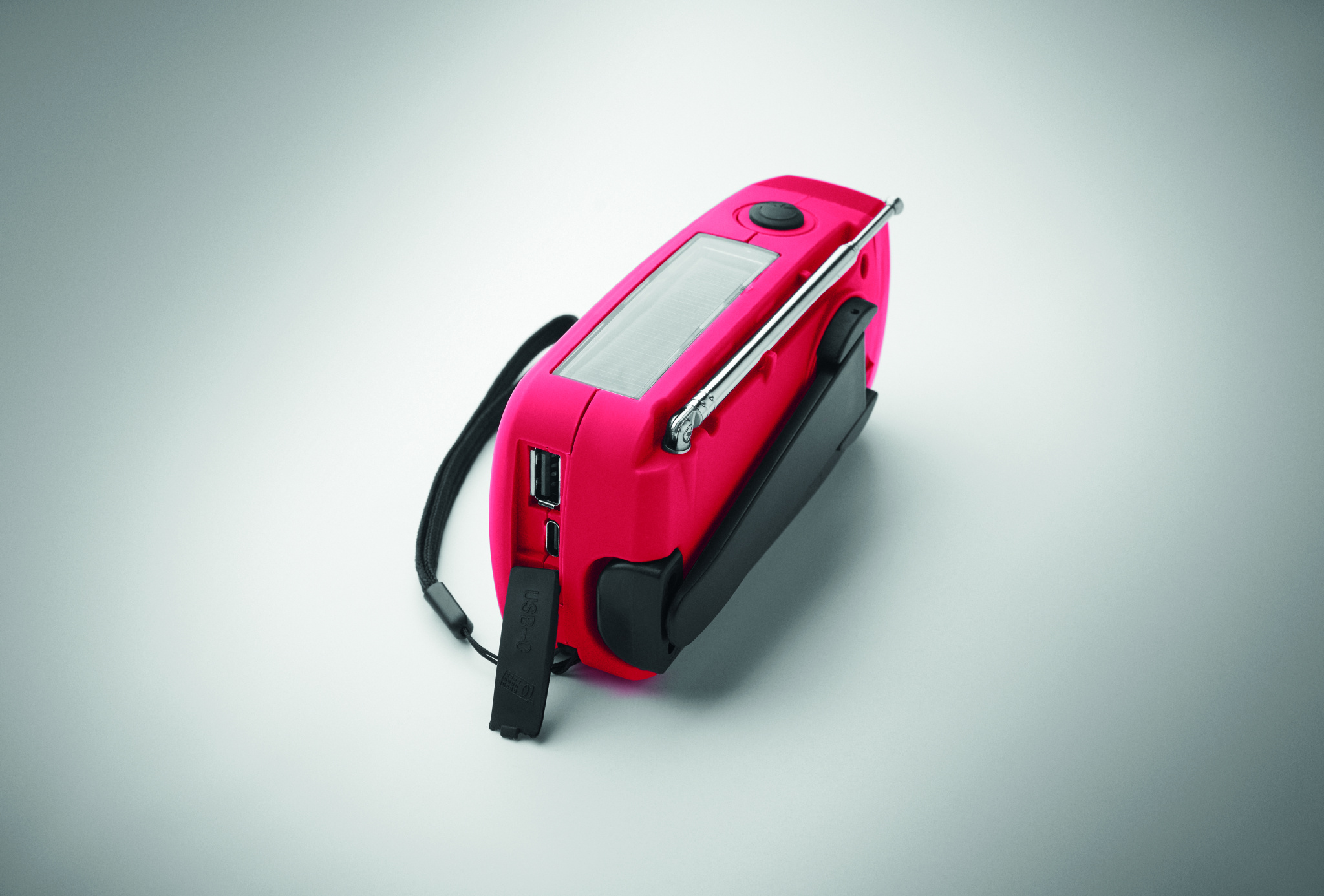 Kaasaskantav AM/FM-raadio vastupidava ABS-plastst korpusega. Raadiol on integreeritud LED-taskulamp (2 valgustusrežiimi) ja 1200 mAh akupank hädaolukordadeks. Seadet saab laadida nii päikesepaneeli kui ka käsivända abil – töötab ka ilma elektrivõrguta.
