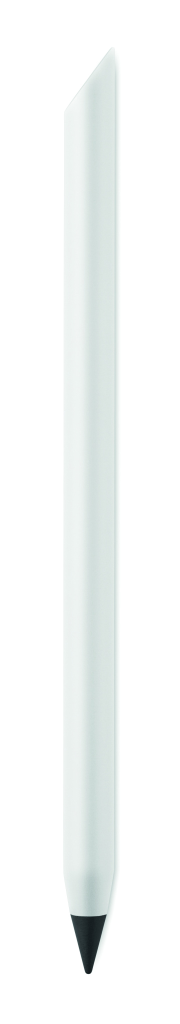 Kauakestev taaskasutatud alumiiniumist tindita pliiats. Pliiats kirjutab grafiitotsaga, millel on plastikust kaitsekate.