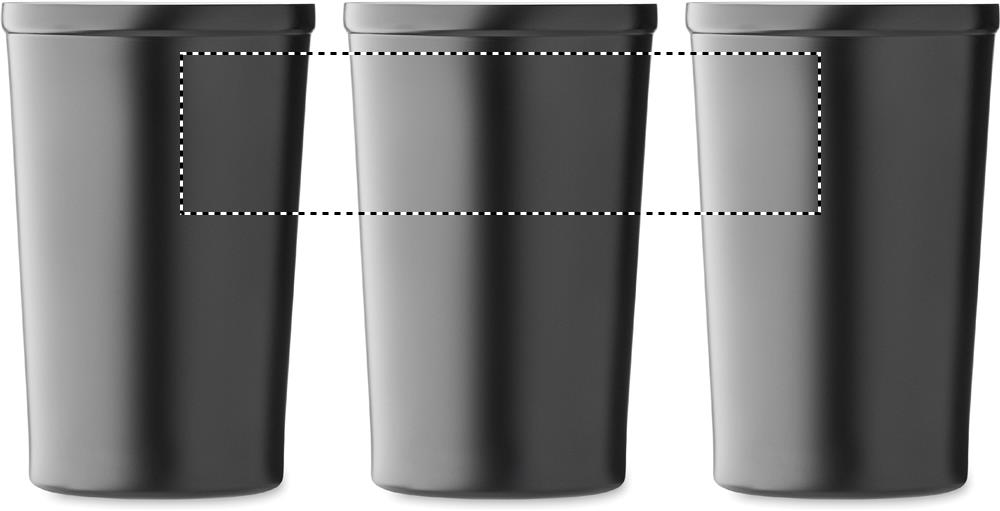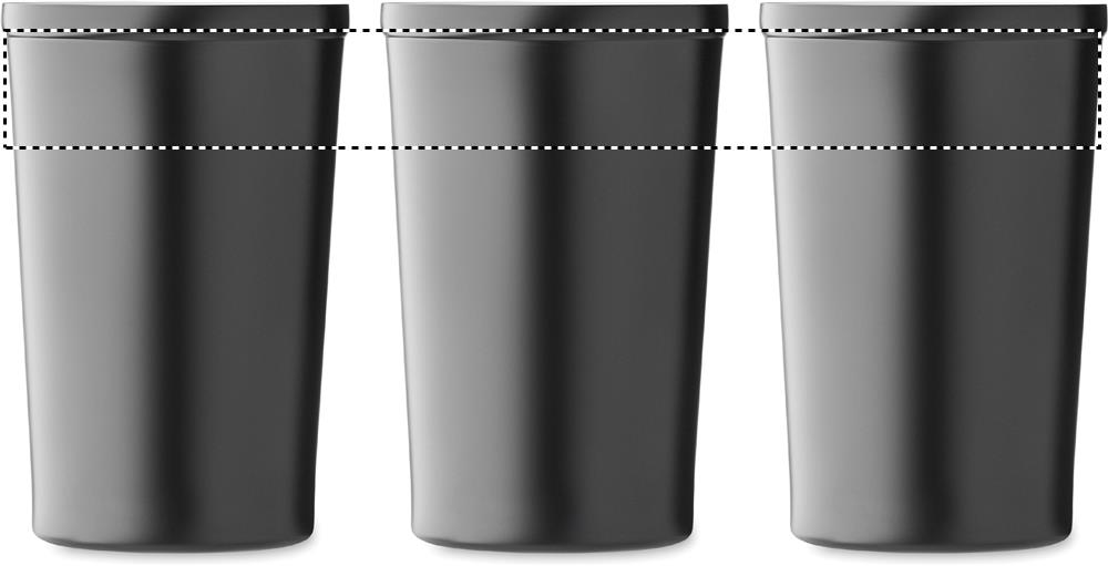 Taaskasutatud roostevabast terasest (90% taaskasutatud roostevabast terasest ja 10% roostevabast terasest) topeltseinaga vaakumisolatsiooniga trummel, keraamilise sisevoodriga. Lekkevaba. Mahutavus: 450 ml.