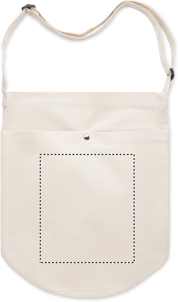 Lõuendist kott pika reguleeritava risti õlarihma ja suure krõpskinnitusega esitaskuga. Kaasas sisetasku. 270 gr/m².