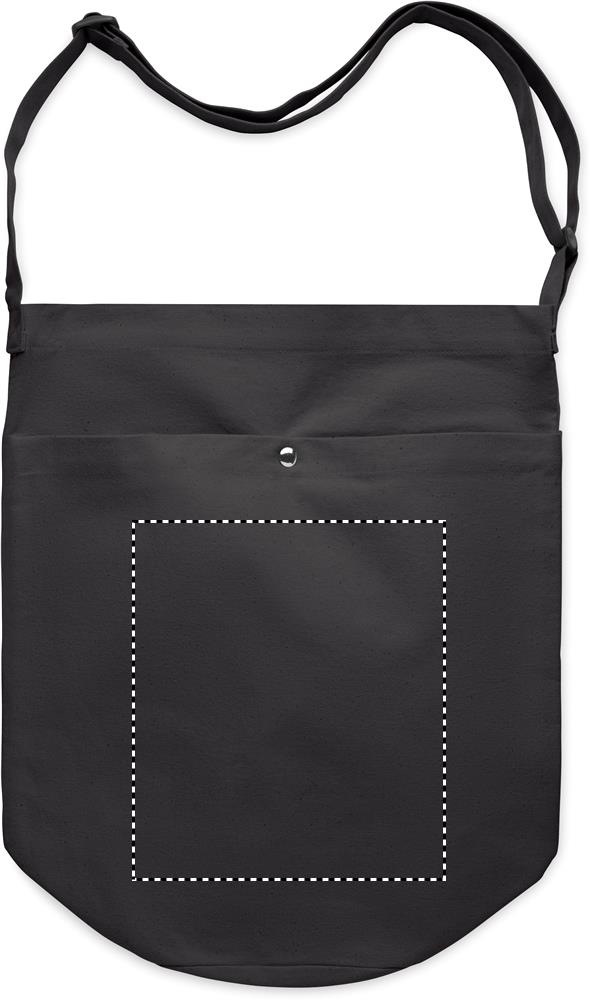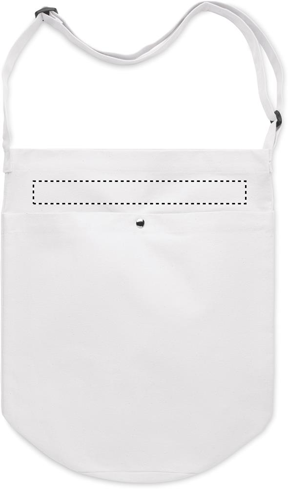 Lõuendist kott pika reguleeritava risti õlarihma ja suure krõpskinnitusega esitaskuga. Kaasas sisetasku. 270 gr/m².