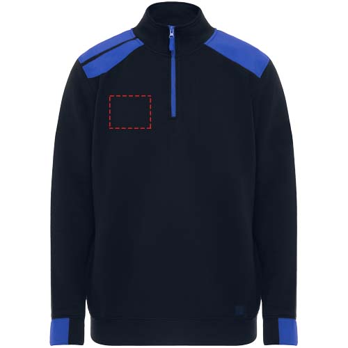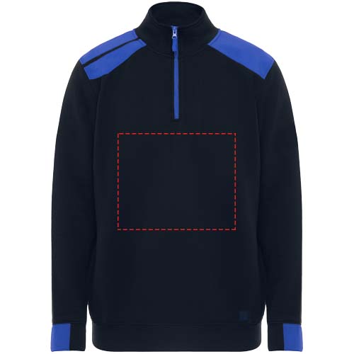 Poolpika lukuga kampsun värvikombinatsiooniga, kõrge kraega. Tugevdatud kaetud õmblused krae siseküljel. Kontrastsed õlad ja detailid. Poolmansett ja alläär 1x1 soonikkangast.