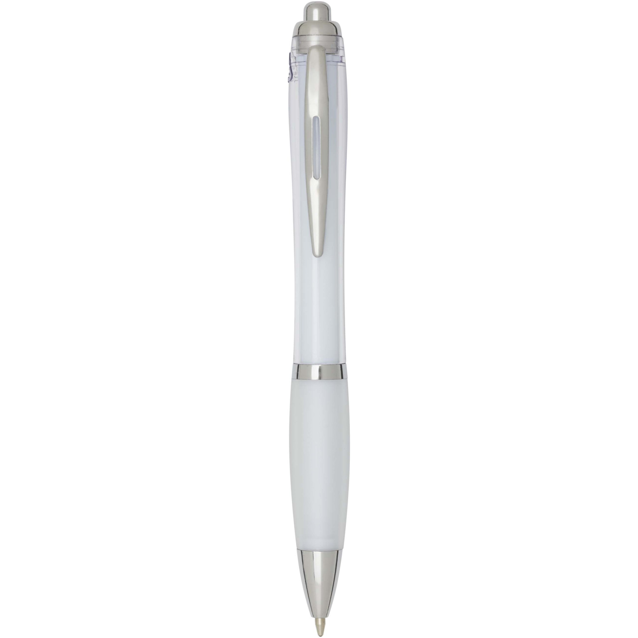 Nashi taaskasutatud plastist klõpsuga toimiv pastapliiats on stiilse kumera disainiga, läbipaistva värvilise korpuse ja hõbedaste ääristega ning sobiva värvi pehme käepidemega mugavaks kirjutamiseks. Valmistatud RCS-sertifitseeritud taaskasutatud ABS-plastist, aitab see vähendada uute materjalide kasutamist, säilitades samal ajal vastupidavuse. Tagaküljel on rABS-logo, mis rõhutab taaskasutatud sisu. Tindi värvus: sinine. Otsa suurus: 1,0 mm. Kirjutuspikkus: 1000 meetrit.