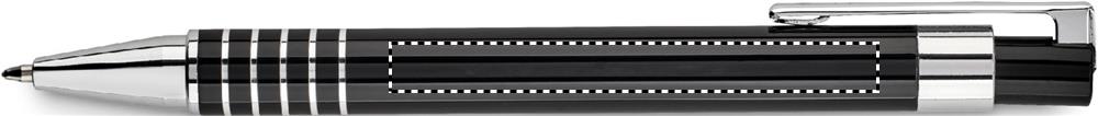 Alumiiniumist pastapliiatsi komplekt, mis sisaldab sinise tindiga push-tüüpi pastapliiatsit ja mehaanilist pliiatsit sobivas metallkarbis.