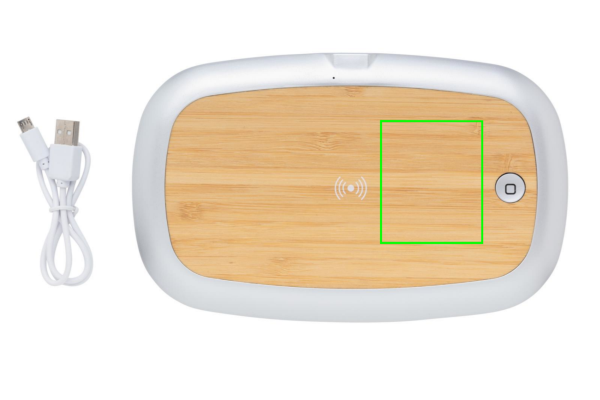 Multifunktsionaalne UV-C sterilisaator, mis tapab kuni 99,9% seadmesse paigutatud bakteritest. Asetage esemed, nagu kõrvaklapid, ehted, käekellad ja näomask, lihtsalt steriliseerimisseadmesse, et steriliseerida need UV-C tehnoloogia abil. Saate valida, kas teha kiire puhastus 90 sekundiga või täielik puhastus 5 minutiga. Sees olev 2 UV-C LED-valgustit on mittetoksiline ja valmistatud ilma elavhõbedata erinevalt paljudest turul pakutavatest UV-lampidest. Disain tagab ka selle, et UV-C LED-tuli lülitub karbi avamisel automaatselt välja, nii et kasutaja ei puutuks kokku UV-C valgusega. Tulede eluiga on 10 000 tundi. Sterilisaatori peal on bambusest 5W juhtmevaba laadija mobiilseadme laadimiseks. Kaasa arvatud 100 cm PVC-vaba TPE C-tüüpi kaabel. Sisend: 5V/1,5A; Väljund: 5/1A - 5W. UV-C lainepikkus 270nm-280nm